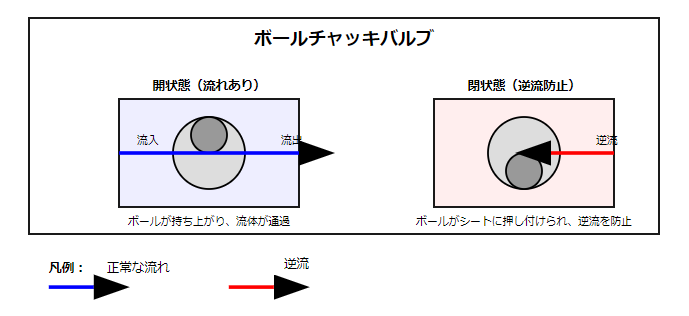 流体が正しい方向に流れるとバルブが開き、逆流すると自動的に閉じる仕組みになっています。