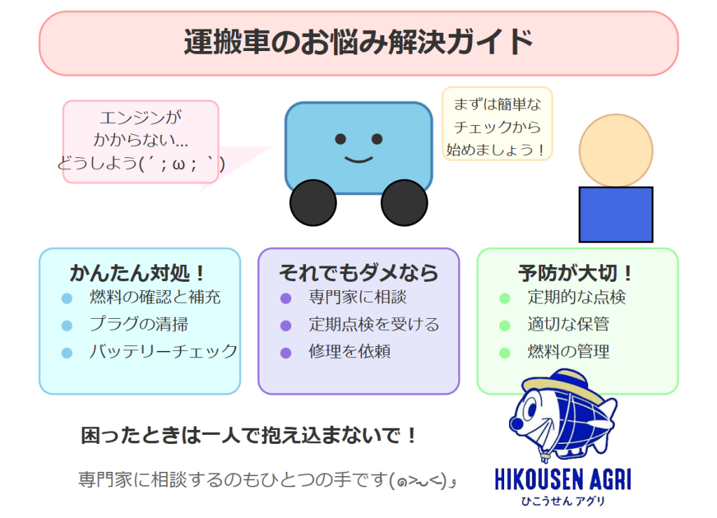 運搬車のエンジンがかからない場合の応急処置と対策
