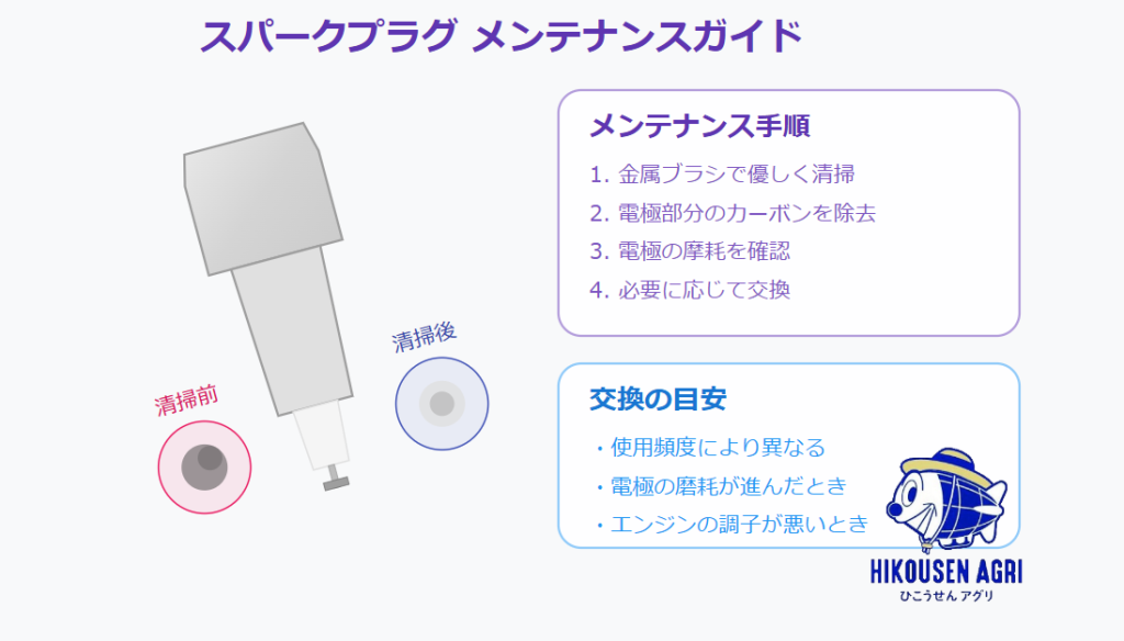 使用頻度や燃料の種類によってプラグの寿命も変わります。目視で点検しつつ、怪しいと思ったら交換が無難です。
