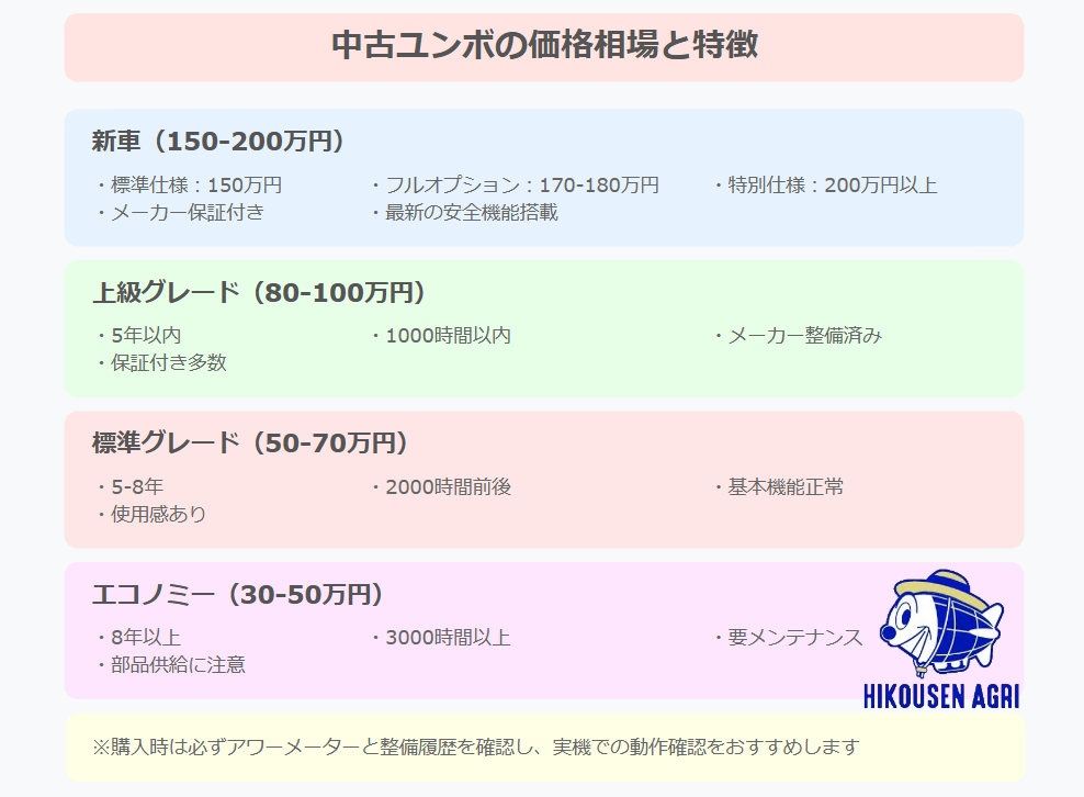 中古ユンボ価格の相場と年式別特徴